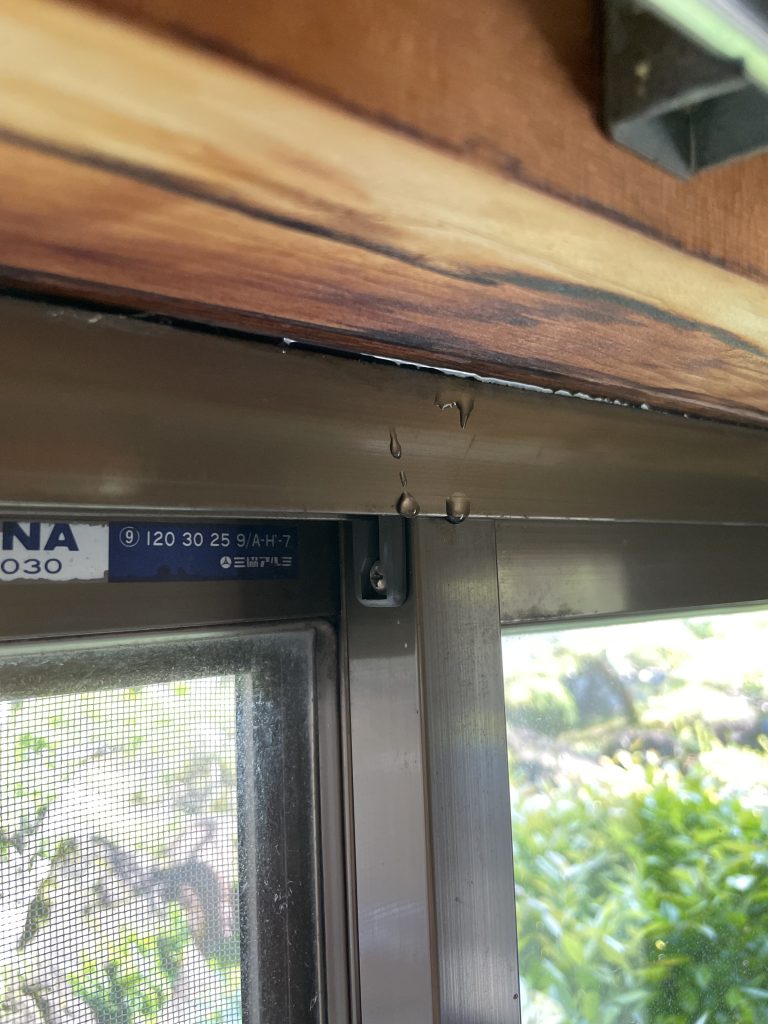 雨漏りの原因が特定できないため、怪しそうなところに順に水をかけることに。かけ出してしばらくは何も変化有りませんでしたが、数分後にどぼっどぼっとすごい勢いで水が出てきました。どうもタイムラグがあるようです。天井の点検口から見ていましたが、見てる範囲には水が確認できず、ちょっと焦ります。