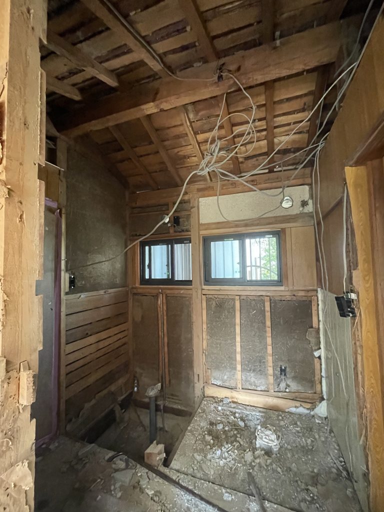 トイレ、改修工事 2025.06.18 よろず日誌 トイレ、改修工事始まりました。まずは解体です。ローカも少し広くするので、先にローカの壁を撤去します。これで解体材の搬出が楽になります。 玄関ホール張り替え 前の記事